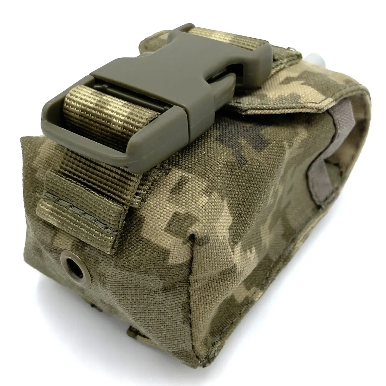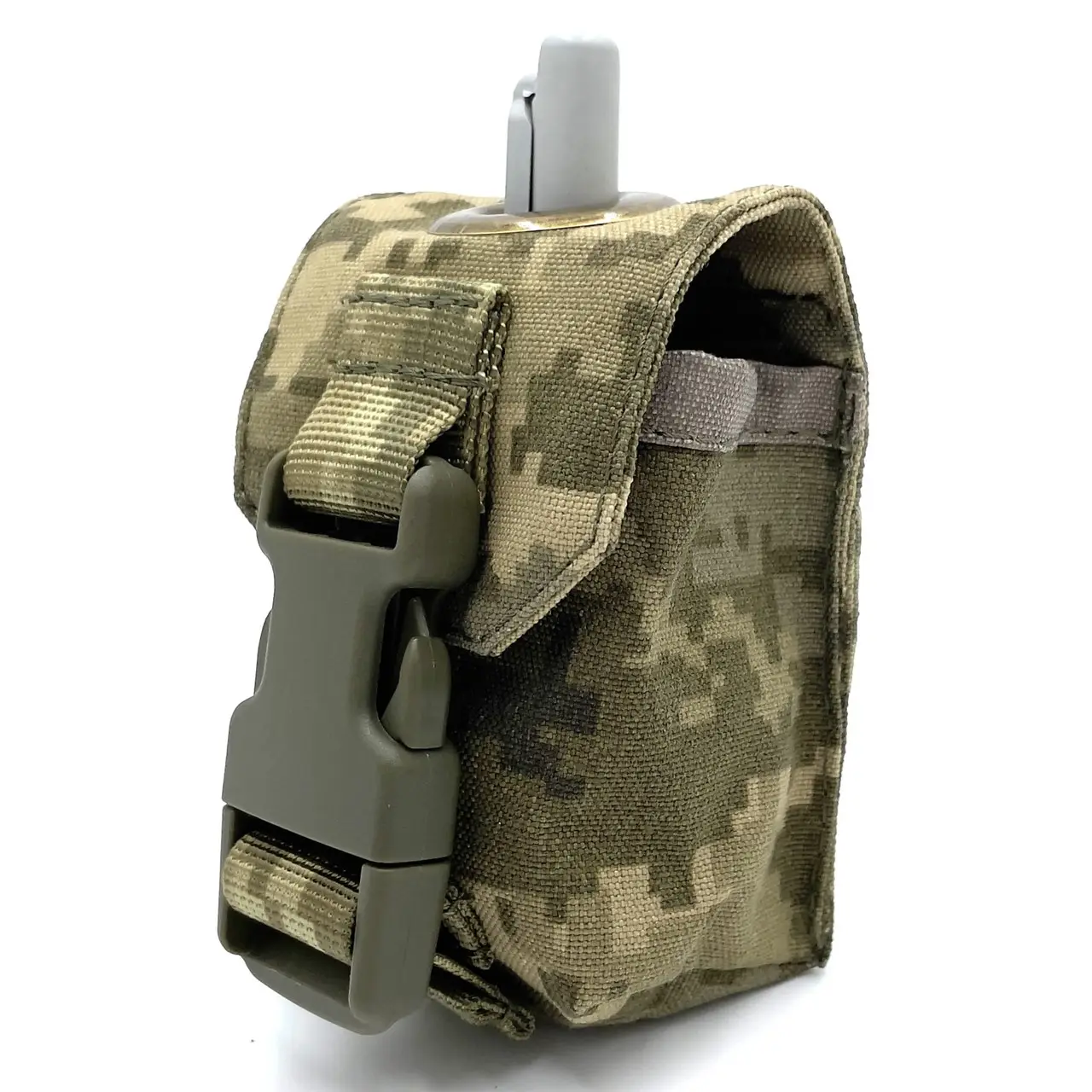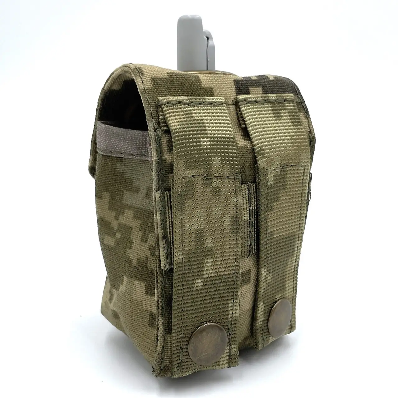 для гранатПодсумок имеет два ряда ячеек и две клипсы для фиксации на любом MOLLE-совместимом снаряжении. Крышка-клапан фиксируется с помощью фастекса шириной 25 мм и препятствует выпадению гранаты.