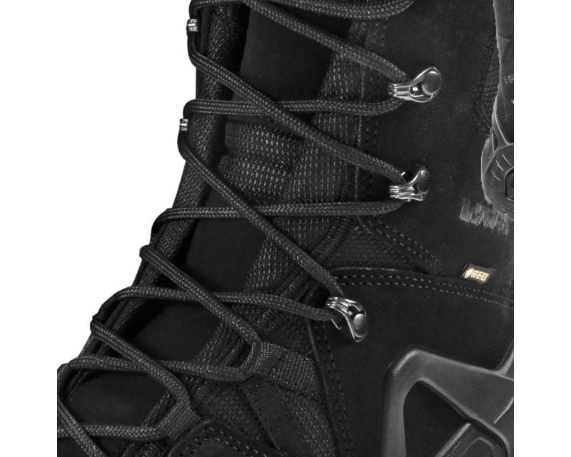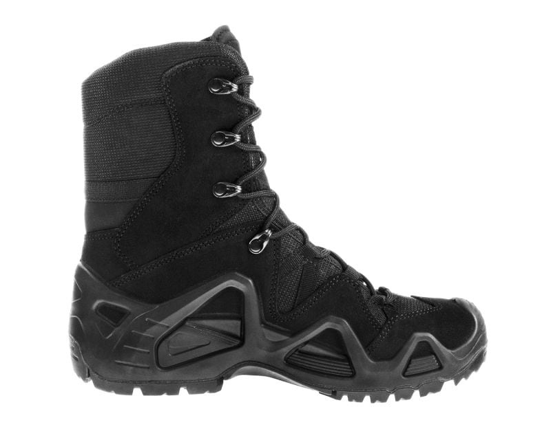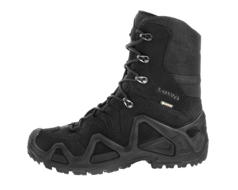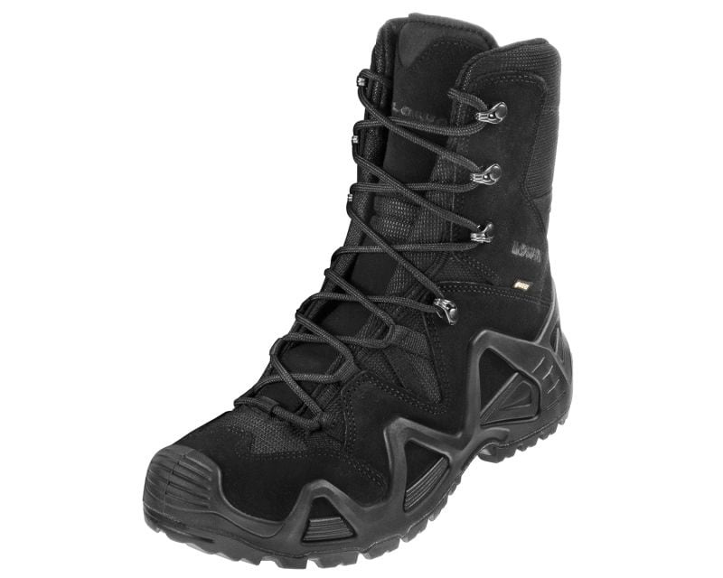Крепкие ботинки Zephyr GTX в версии High производства компании Lowa. Они хорошо зарекомендуют себя во время работы силовых структур, таких как армия, полиция или пограничники, а также универсальная обувь для города или бездорожья. Обувь изготовлена из современных материалов с повышенной водостойкостью, а дышащая и водонепроницаемая мембрана GORE-TEX обеспечивает лучшую циркуляцию воздуха и соответствующий тепловой комфорт. Стелька Climate Control с сетчатой структурой гарантирует сохранение сухости и предотвращает появление натоптышей. Высокий верх из кордуры и гидрофобной велюровой кожи толщиной 1,5 мм защищает стопу и голеностопный сустав от повреждений и травм. Низкопрофильные и обтекаемые металлические вставки для шнуровки позволяют быстро зашнуровывать обувь. Устойчивое движение по бездорожью, гарантированное противоскользящее. Амортизированная резиновая подошва Lowa Cross с литым протектором для очень хорошего сцепления на широком спектре поверхностей. Защита носка и пятки снабжается дополнительным слоем материала и промежуточной подошвой PU MONOWRAP. Такое решение предотвращает травмы, защищая от прямых ударов о бордюры, выступающие части брони, большие камни или корни.