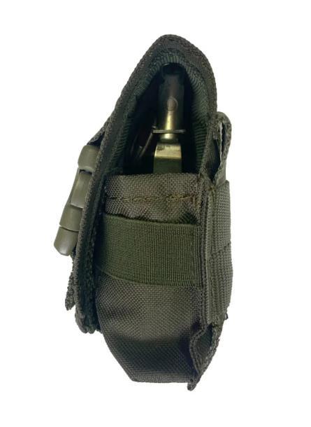 NOVATOR PG-1 - подсумок для осколочной гранаты, функциональный и надежный элемент снаряжения бойца. Данная модель предназначена для размещения и удобной транспортировки ручных гранат типа Ф-1, РГД-5, F1, М67. Подсумок оборудован крышкой-клапаном и закрывается фастексом, что обеспечивает быстрый доступ к гранате. Особая регулировка застежки клапана позволяет адаптировать подсумок под содержание разной длины. Эластические резинки с обеих сторон обеспечивают дополнительную фиксацию. Система крепления MOLLE позволит Вам закрепить подсумок на все современные модульные и разгрузочные системы. Изготовлен из высококачественного материала Oxford 600D – сверхпрочной ткани, устойчивой к стиранию и высоким нагрузкам. 202051
