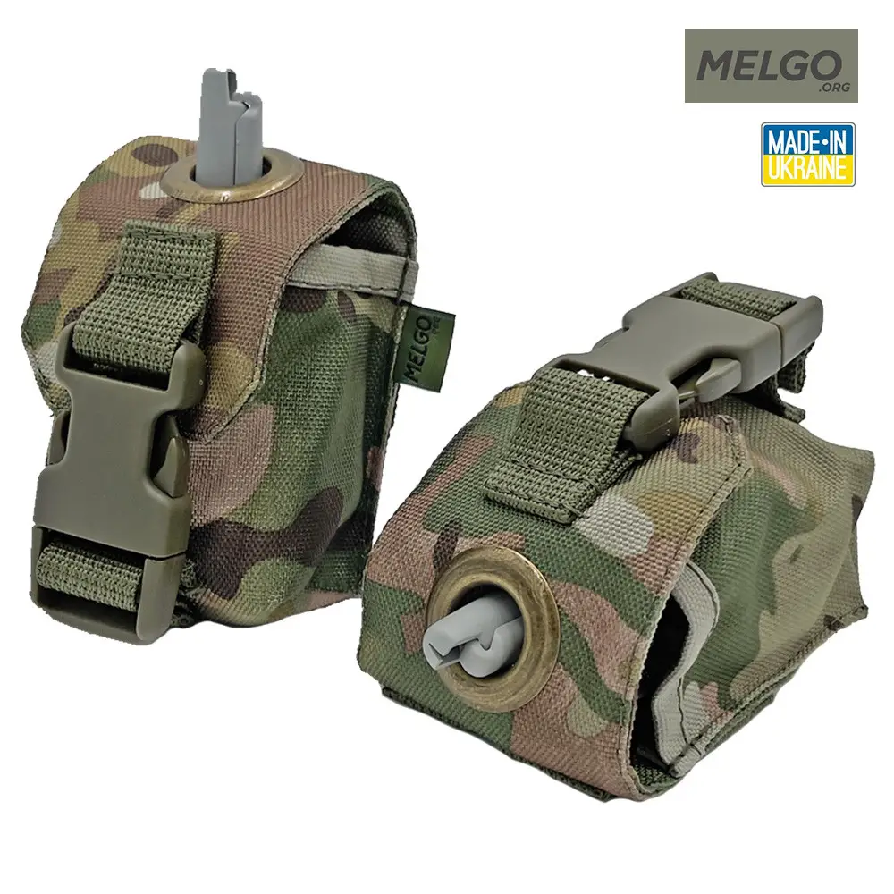 пиксельФиксация. Подсумок имеет два ряда ячеек и две клипсы для фиксации на любом MOLLE-совместимом снаряжении. Крышка-клапан фиксируется с помощью фастекса шириной 25 мм и препятствует выпадению гранаты.
