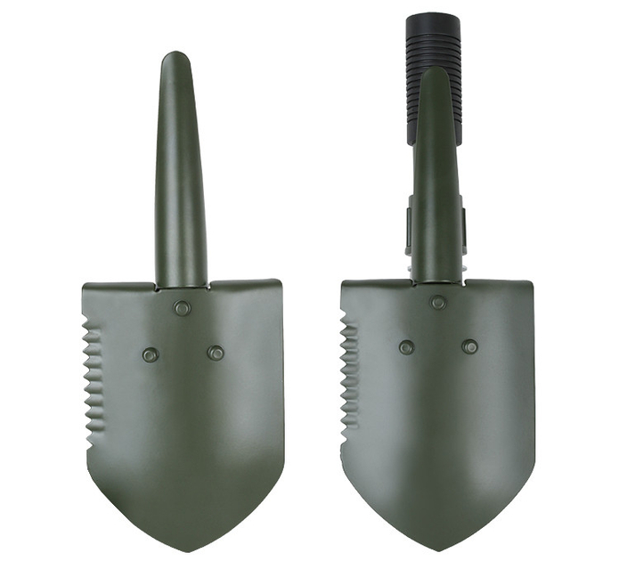Складная лопата, легкая, очень удобная и маленькая, сложенная, найдет широкое практическое применение. Он поместится в бардачок автомобиля, сумочку и даже в карман. Изготовлен полностью из стали, складная металлическая ручка с резиновыми накладками - поглощает вибрации, перчатки не примерзают к ней при низких температурах и т.д. Конструкция отличается высокой ударной вязкостью и надежностью. Чрезвычайно универсален, кроме классической функции лопаты, выполняет еще функции копателя или крюка (в сложенном пополам) и кирки (для копания в глине, мерзлой почве). Возможность подпиливания корней или кустов двумя типами зубьев на одном лезвии. Покрыта краской маскирующего цвета, что дополнительно защищает от коррозии. В комплекте есть непромокаемый чехол, можно прикрепить к ремню. новый продукт немецкой компании Mil-Tec крышка включена складной легкий и надежный сталь покрыта слоем краски лопата, копатель и кирка функция функция пилы общая длина 41 см Размеры совка: 130 x 95 мм длина после складывания 15,5 см общий вес 575 г цвет ОЛИВ