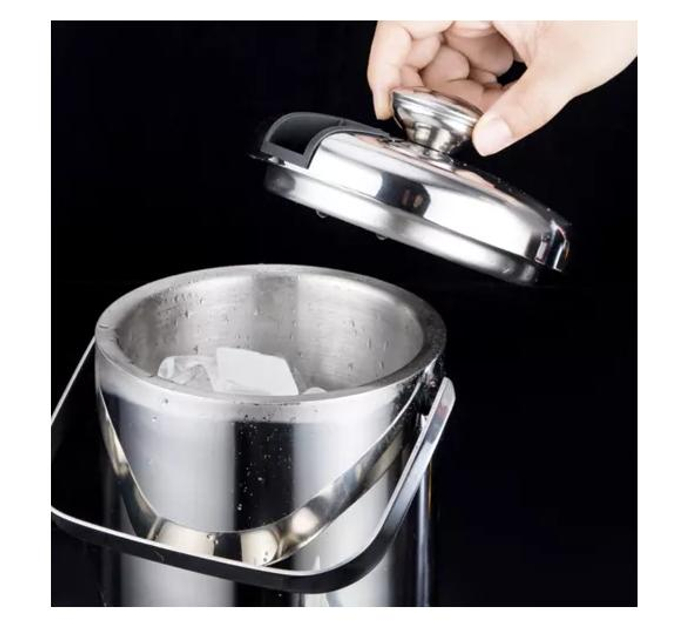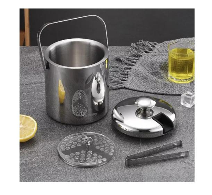 ОПИСВІДЕРЦЕ ДЛЯ ЛЬОДУ + ЩИПЦІ + ЛОЖКА ПОДВІЙНА СТІНКА ЗБЕРІГАЄ ПРОХОЛОДУ - Набір виготовлений з міцної нержавіючої сталі. Кришка та відерце мають подвійні стінки, щоб лід довше залишався замороженим.ВЕЛИКА ЄМНІСТЬ 1,3 л - контейнер для льоду ідеально підходить для подачі кубиків льоду гостям до напоїв, але ви також можете використовувати його для охолодження пляшки або банки. Ємність 1,3 л вміщує класичну пляшку алкоголю.РУЧКА ДЛЯ ТРАНСПОРТУВАННЯ - з боків відра встановлена ручка, що дозволяє легко і зручно переміщати відро і його вміст з одного місця в інше. Ручка має ергономічну форму і її зручно тримати.КРИШКА, СИТЕЧКО, ЛОЖКА ТА ЩИПЦІ В КОМПЛЕКТІ - кришка надзвичайно функціональна, з кишенькою, що дозволяє зберігати щипці. Важливим доповненням до набору є ситечко, яке утримує лід над шаром води, що утворюється при його повільному таненні. До набору також входять барменська ложка та щипці для льоду.СПЕЦИФІКАЦІЯ матеріал: нержавіюча сталь, інше: ПВХ + щипці з нержавіючої сталі + ложка з нержавіючої сталіємність: 1.3 лрозміри: 20 х 14.5 смвага: 746 гвага в упаковці: 848gУ КОМПЛЕКТІ відрокришкаситечколожка барменащипці для льодуЛюбите охолоджені напої? Тоді ви просто зобов'язані забезпечити себе якісним відерцем для льоду. Воно ідеально підходить для всіх світських заходів, коли у вас вдома велика кількість гостей і ви хочете розмістити їх якнайкраще.