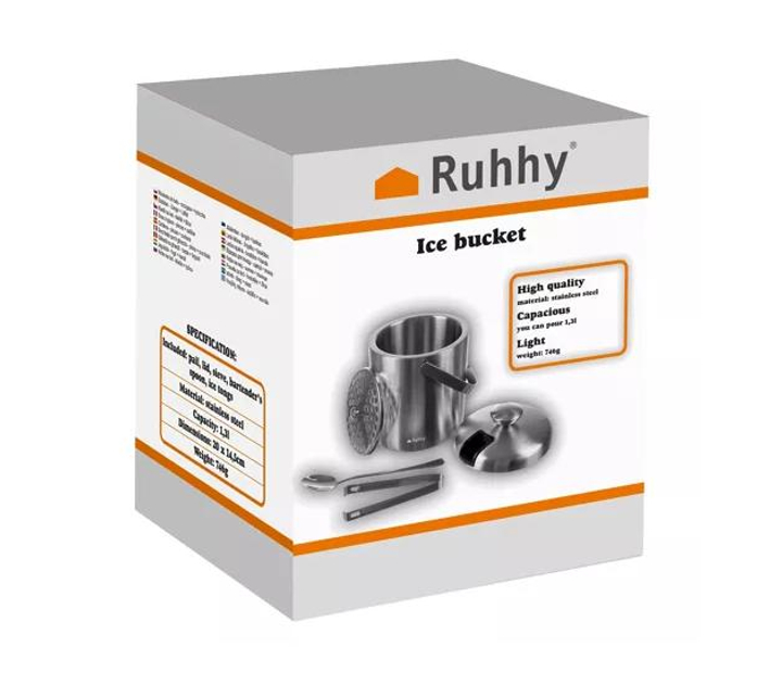 Характеристики Відерце для льоду - щипці + ложка  RUHHY 21159