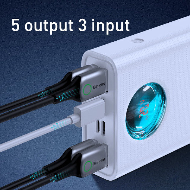 •Baseus Amblight станет отличным решением для зарядки Ваших устройств при отсутствии розеток. Емкости в 30000 мАч хватит для полной зарядки нескольких устройств и небольшой вес в 550 граммов, позволяет брать Baseus Mulight 65W с собой куда угодно.