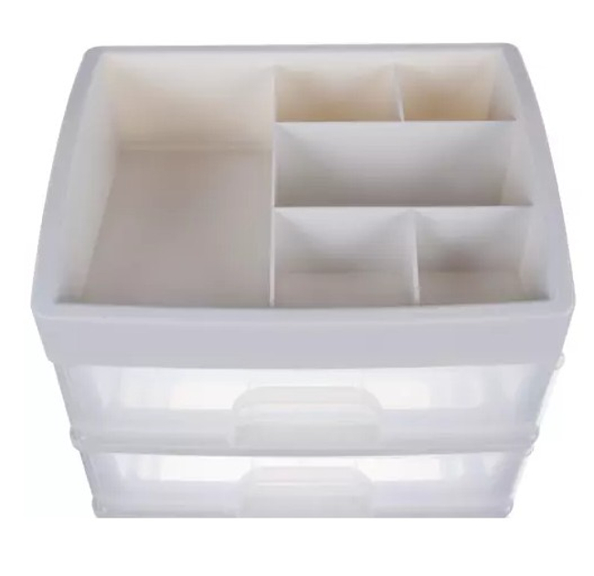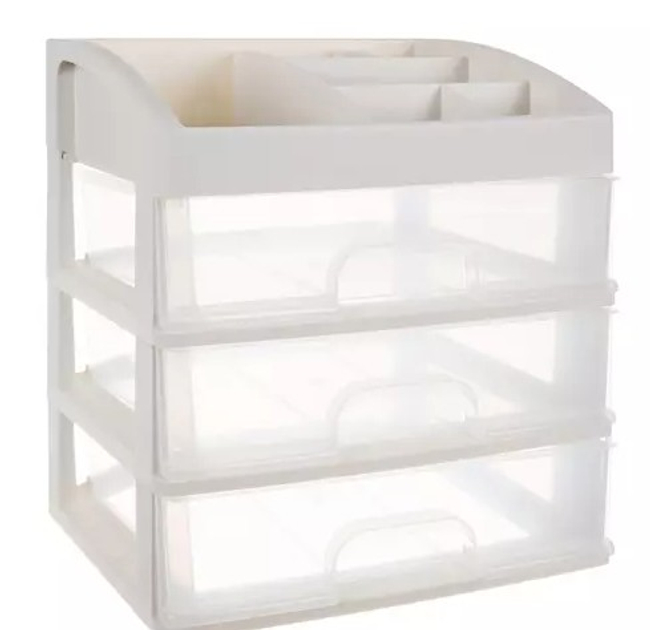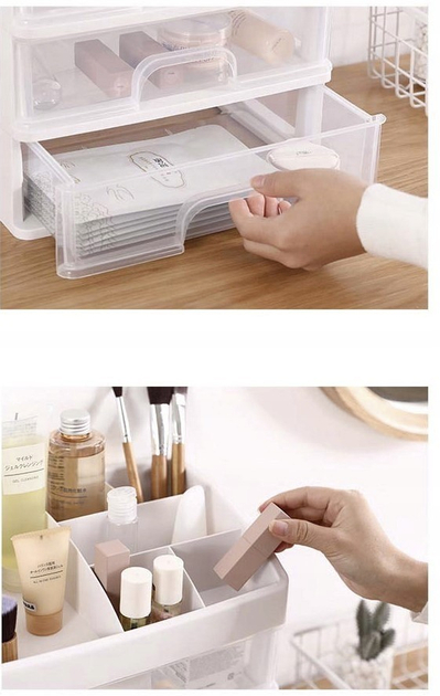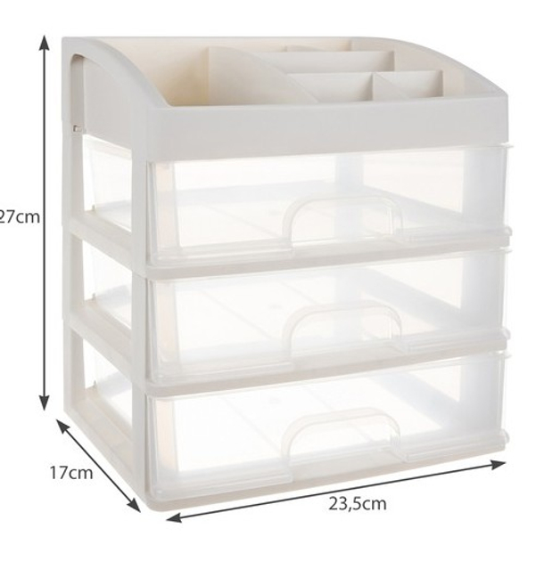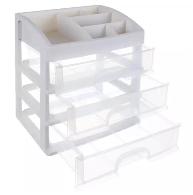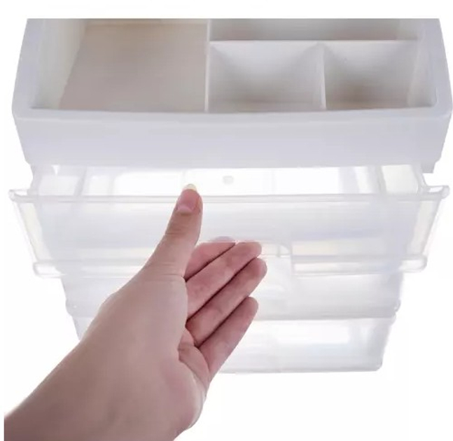 Органайзер стойка Soulima для косметикиПрекрасный элемент дизайна интерьера, который облегчает поддержание косметики и других вещей в порядке. Если вы цените удобство и хотите иметь под рукой любимую косметику или украшения, этот товар именно для вас. 3 ПРОЗРАЧНЫХ ЯЩИКА - органайзер изготовлен из прозрачного материала, благодаря чему хорошо видно, что находится внутри, что позволяет быстро найти нужный предмет и достать его. Имеет 3 прозрачных ящика одинакового размера . ПОЛКА С ОТДЕЛЕНИЯМИ НА САМОМ ВЕРХЕ - дополнительно верхняя часть разделена на сегменты, где можно подогнать косметику под пространство. В нем целых 6 различных отделений разного размера. МНОГОФУНКЦИОНАЛЬНЫЙ - органайзер хорошо подойдет в качестве изделия для хранения косметики, различных видов украшений, а также канцелярских товаров, мелкой электроники, шурупов, гаек и т. д. Его можно использовать на кухне и в ванной, а также в других помещениях. где это будет полезно. СОБЛЮДЕНИЕ ПОРЯДКА - это поможет вам быть организованной, и ваша проблема с поиском подходящей помады или бронзатора исчезнет. Каждый товар будет на своем месте. Это большое удобство, а также помогает поддерживать косметику в порядке.СПЕЦИФИКАЦИЯ цвет: молочный/прозрачныйматериал: пластикразмеры: 27 х 23,5 х 17 см.вес: 694 гвес в упаковке: 920 г.
