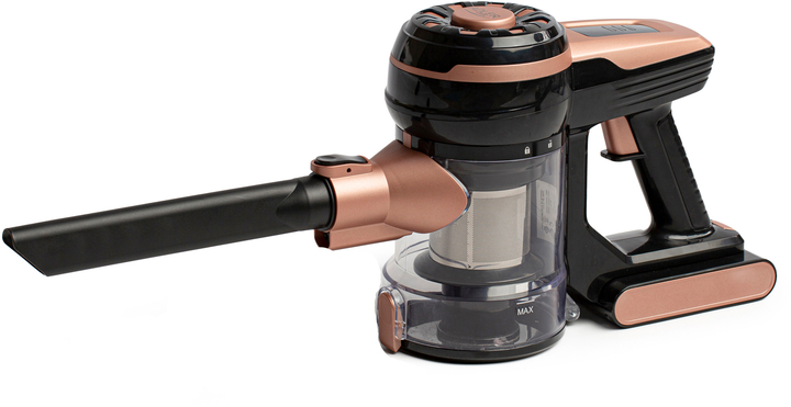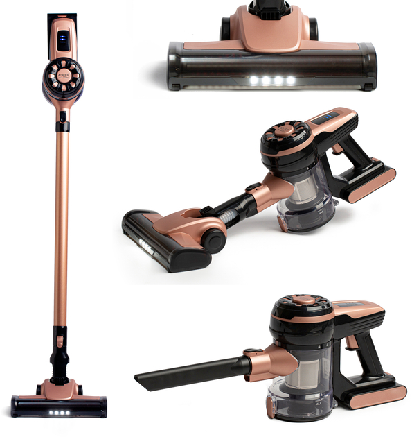 Уборка – не наша любимая домашняя работа. Тем не менее, оснащенные соответствующим оборудованием мы можем быстро и эффективно обеспечить чистоту всех помещений в доме или квартире. Ручной пылесос без мешка ADLER AD 7044 - это устройство, которое заставит вас пылесосить чаще и с улыбкой! <Ручной пылесос – о чем следует знать Наибольшим преимуществом нашего пылесоса является то, что он полностью портативный. Беспроводная конструкция позволяет использовать его даже на балконе, террасе или даже в автомобиле. Нам не нужно беспокоиться о поиске доступных розеток. Съемный аккумулятор, обеспечивающий 40 минут непрерывной работы на одном заряде, представляет собой инновационное дополнение. Этого времени точно хватит, чтобы убрать несколько комнат. Еще одно преимущество – этому пылесосу не нужны мешки! Одно нажатие кнопки опорожняет контейнер для пыли, и вам не придется загрязнять руки, когда вы меняете пакеты. Просто очищайте его после каждого пылесоса. Сам контейнер имеет объем 0,8л, поэтому можно удобно пропылесосить всю квартиру. Фильтр HEPA гарантирует, что воздух, выходящий из пылесоса, будет свободен от пыльцы и других аллергенов. Дополнительные функции пылесоса ADLER AD 7044 , которые сделают уборку еще приятнее Максимальная мощность устройства до 250 Вт означает, что все крошки, песок и грязь будут собраны без особого труда. Однако, если на поверхности есть трудно удалить грязь, просто нажмите кнопку TURBO, которая быстро изменит скорость работы устройства с низкой на высокую. Все кнопки, то есть кнопка разблокировки щетки, кнопка разблокировки трубки и кнопка разблокировки аккумулятора расположены в легкодоступном месте. В набор также входят разные виды наконечников: электрическая щетка, обивочная щетка 2 в 1 и длинный наконечник для уборки щелей. Благодаря им мы можем легко чистить ковры, дорожки, ПВХ полы или панели, мебель и даже книжные полки. Щетка оснащена светодиодной подсветкой, поэтому вы точно сможете добраться до любого уголка, даже под диваном или креслом.