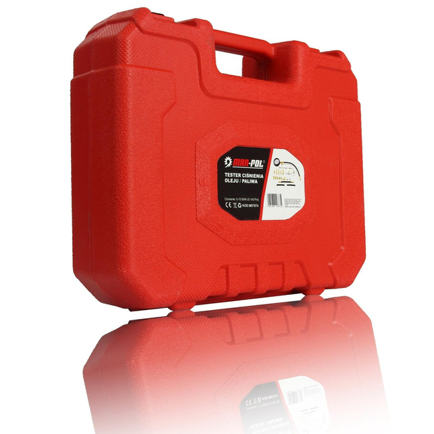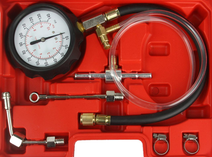 Набор для измерения давления топлива и масла Mar-Pol 0–10 бар 21 единица (M57674) Универсальный и многофункциональный набор для измерения давления топлива или масла. Набор работает с большинством автомобилей. В комплект входят переходники и фитинги, подходящие для большинства систем впрыска топлива. Манометр с двойной шкалой: 0–140 фунтов на квадратный дюйм и 0–10 бар. Длинный гибкий шланг с выпускным клапаном позволяет безопасно измерять давление. Тестер совместим с марками: Acura, Alfa Romeo, Audi, BMW, Chrysler, Daihatsu, Eagle, Fiat, Ford, GM, Geo, Honda, Hyundai, Isuzu, Jeep, Jaguar, Mazda, Mercedes Benz, Mitsubishi, Nissan, Peugot, Porsche. , Рено, Сааб, Субару, Сузуки, Тойота, Вольво и другие. Особенности Манометр с двойной шкалой позволяет считывать давление сгорания топлива в двигателе Отличный инструмент для диагностики неисправностей давления в системе Подходит для большинства двигателей Набор поставляется в удобном чемодане и подходит для большинства двигателей. Набор из множества переходников позволит подобрать нужный наконечник. Манометр имеет резиновую крышку, защищающую его от повреждений при падении. Возможность подключения напрямую к топливному насосу.