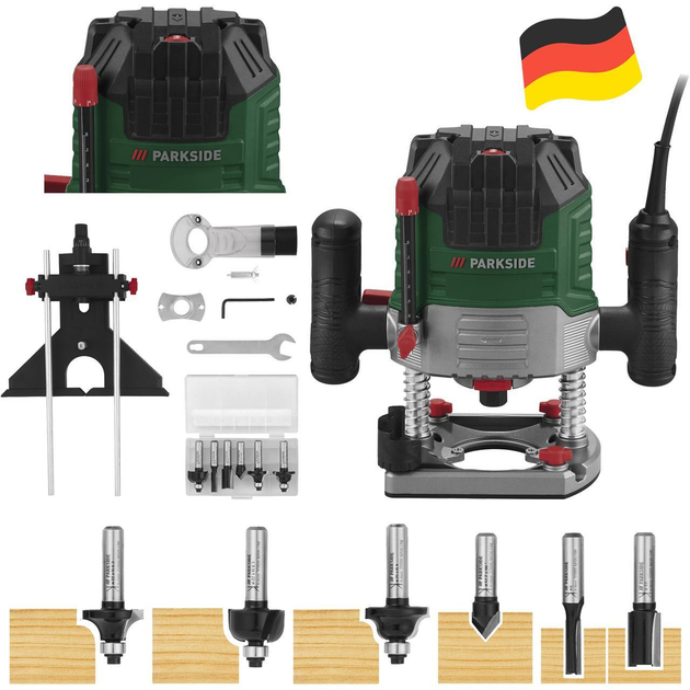 Фрезерний ручний верстат по дереву Parkside POF 1200 E4 (1200 Вт, регулювання швидкості, набір фрез)