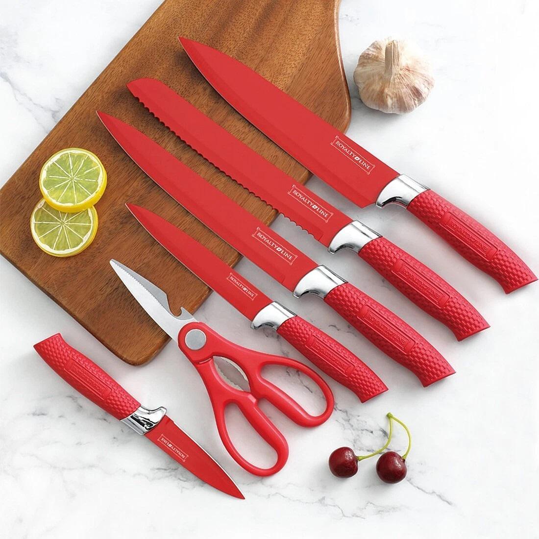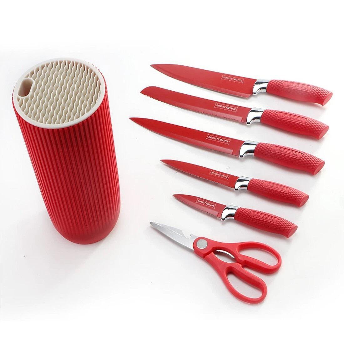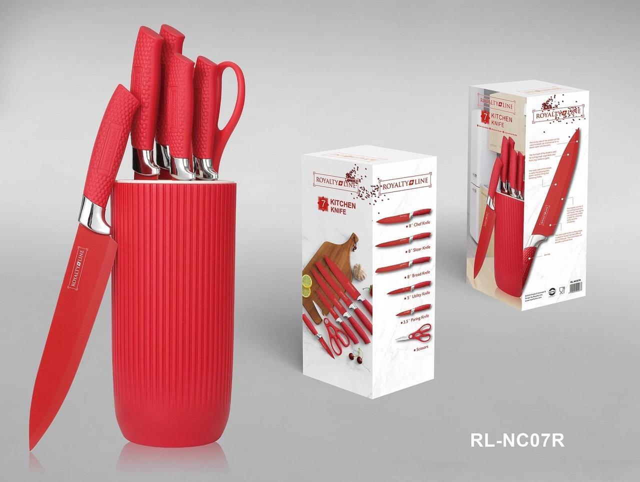 Набор кухонных ножей Royalty Line RL-NC07P из нержавеющей стали с ножницами в подставке 7 предметов