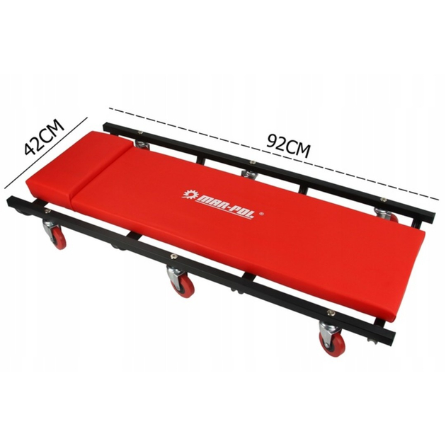Лежанка для мастерской – незаменимый аксессуар для любой мастерской. Изготовленный из прочной стальной конструкции со специальными резиновыми колесами, эта лежанка позволяет легко перемещаться под автомобилем или в мастерской во время работы.Она также оснащена удобным подголовником для улучшенного комфорта во время работы.