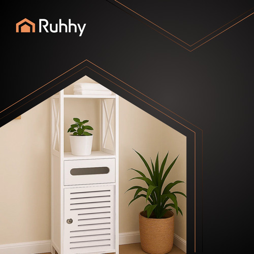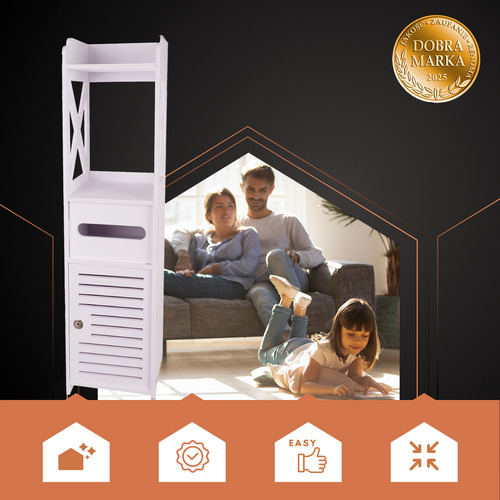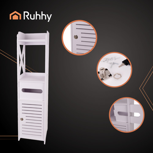 Отдельно стоящий шкафчик для ванной комнаты с держателем для туалетной бумаги, запирающийся, полка-колонна белого цвета RUHHY!