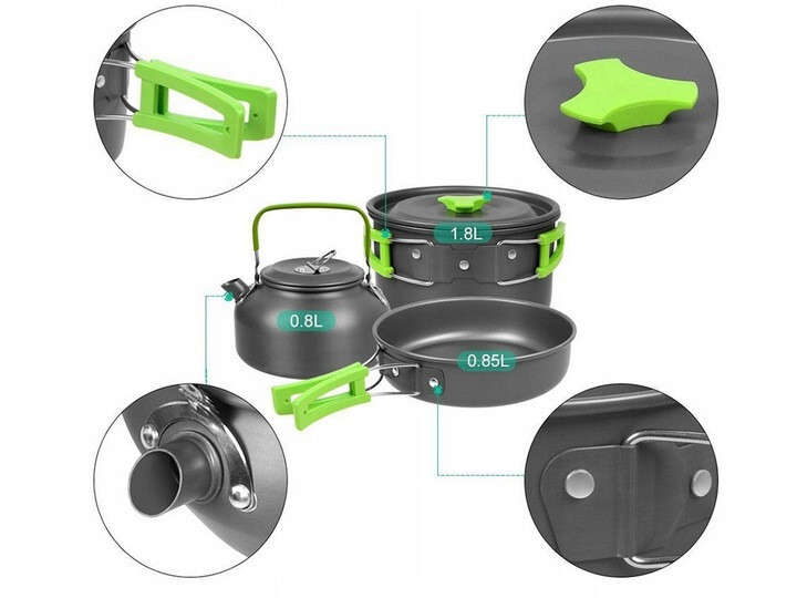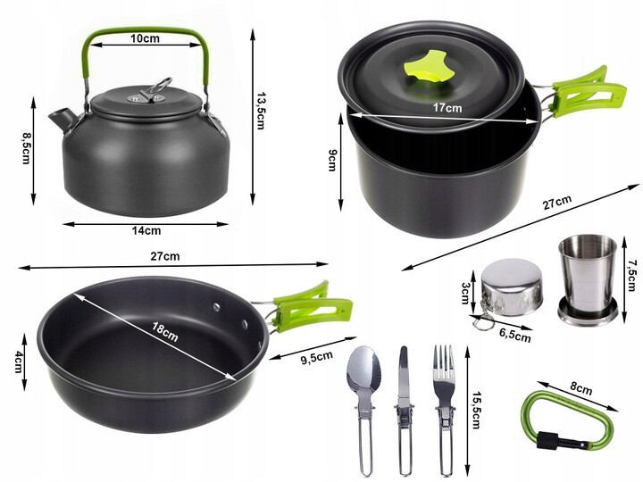 Туристический набор посуды Trizand 18 в 1 — это мобильная кухня для двоих, которая включает все необходимое для готовки и еды в походных условиях. В комплект входят кастрюли, сковорода, чайник, приборы, чашки, карабины, чехол и многое другое. Легкий, прочный и компактный — идеален для кемпинга, поездок и дачи.