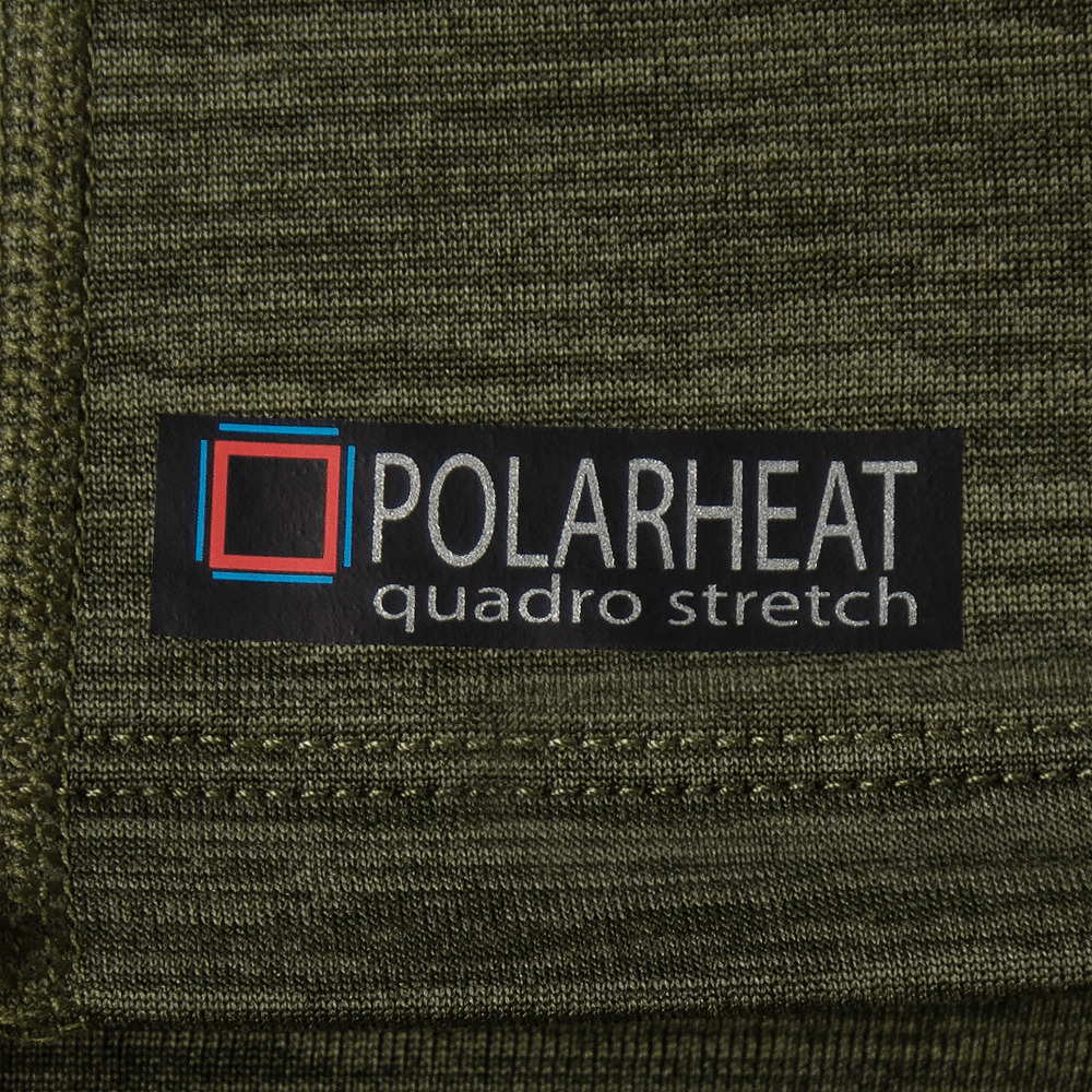 Всередині тканина оснащена шаром мікрофлісу Quadro microfleece, що має структуру у вигляді квадратів з проміжками між ними. На відміну від суцільної поверхні, така структура дозволяє краще "дихати" і відводити вологу, не втрачаючи своїх зігріваючих властивостей. Додаткові вузькі смужки мікрофлісу між квадратами ще більше покращують вентиляцію, роблячи цю модель більш ефективною порівняно з попередніми версіями термобілизни Polarheat.