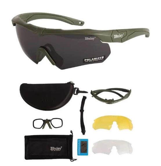 Очки Daisy X10, очки,OLIVA, с поляризацией Тактические очки Daisy X10 – это идеальный выбор для военных и других специалистов, которым необходимы надежные и удобные очки для работы в разных условиях. У них черная линза с поляризацией, которая обеспечивает яркое и четкое видение даже в ярком свете. Эти очки легко надевают и сидят удобно на очки Daisy X10 OLIVA: надежная защита твоих глаз