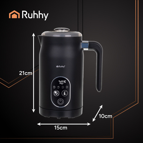 Вспениватель молока RUHHY — это элегантное и функциональное устройство, позволяющее за считанные секунды приготовить густую кремовую пену, как в кофейне . Благодаря четырем режимам нагрева (55°C, 60°C, 65°C и 75°C) и объёму от 80 мл для взбивания и 270 мл для подогрева, он идеально подходит для капучино, латте и горячего шоколада .