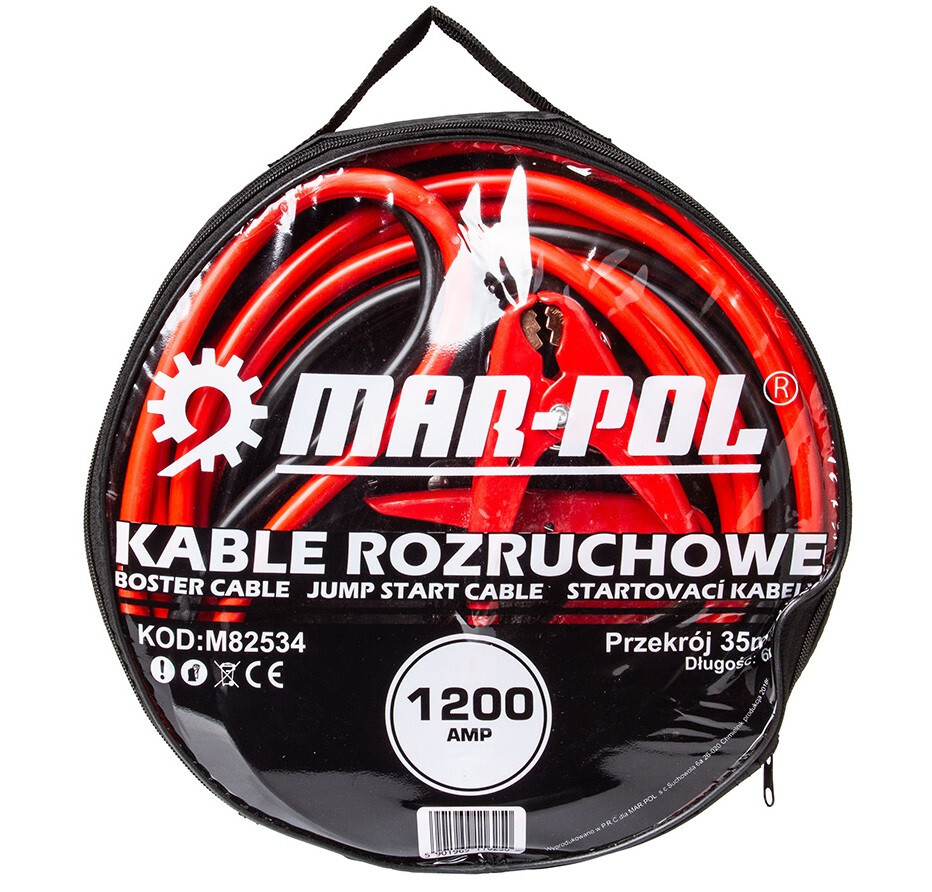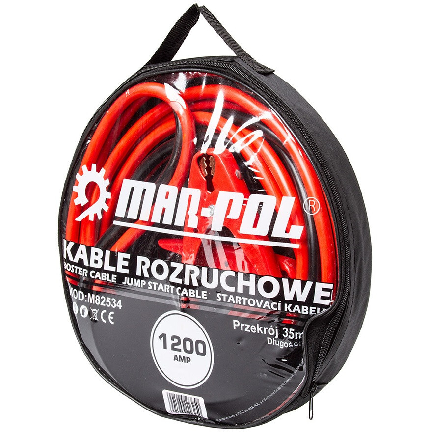 Пусковые кабели Mar-Pol M82534 1200A — надёжное решение для быстрого запуска автомобиля с разряженным аккумулятором. Кабели длиной 6 м и сечением 35 мм? обеспечивают стабильную передачу тока до 1200 А, подходят для бензиновых и дизельных двигателей. Медные проводники с низким сопротивлением минимизируют потери энергии и обеспечивают эффективный пуск двигателя. Гибкая, износостойкая изоляция устойчива к морозу и механическим повреждениям, что повышает срок службы изделия