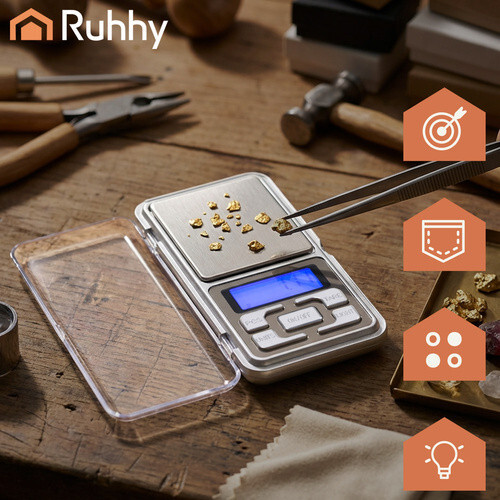 Карманные весы Ruhhy обеспечивают точность до 0,01 г и диапазон взвешивания до 200 г, благодаря чему они подходят для использования везде, где важна точность. Компактная конструкция помещается в ладони и позволяет удобно брать весы с собой в путешествие, на работу, в мастерскую или в цех. Встроенная крышка защищает механизм и дисплей, а подсветка экрана облегчает считывание показаний в любых условиях. Это практичный инструмент для ювелиров, коллекционеров, любителей, моделистов или людей, взвешивающих небольшие ингредиенты на кухне